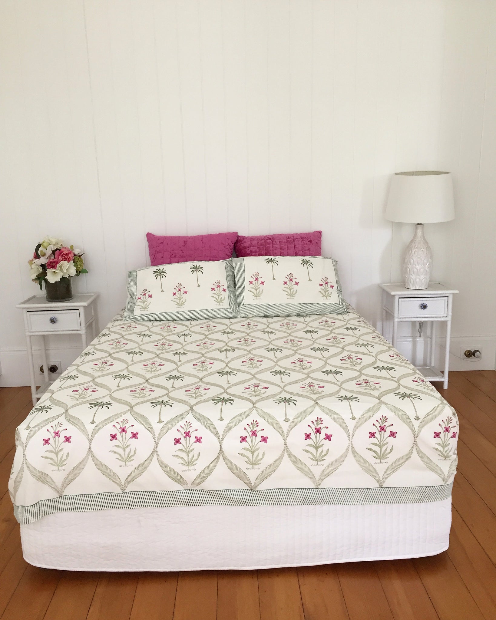Summer Bedcover Set ~ Kashvi Palm (QUEEN | KING)